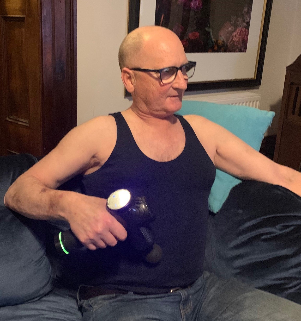 i am also using a massage gun to help soften my skin. I got this idea from Dougall’s mate Pope.